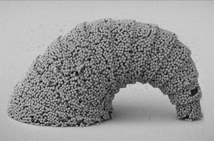 颗粒在模板内部不断累积,逐步填充出预设三维形状。组装完成后,通过后处理选择性去除聚合物模板,得到完全由目标材料构成的独立三维微结构。